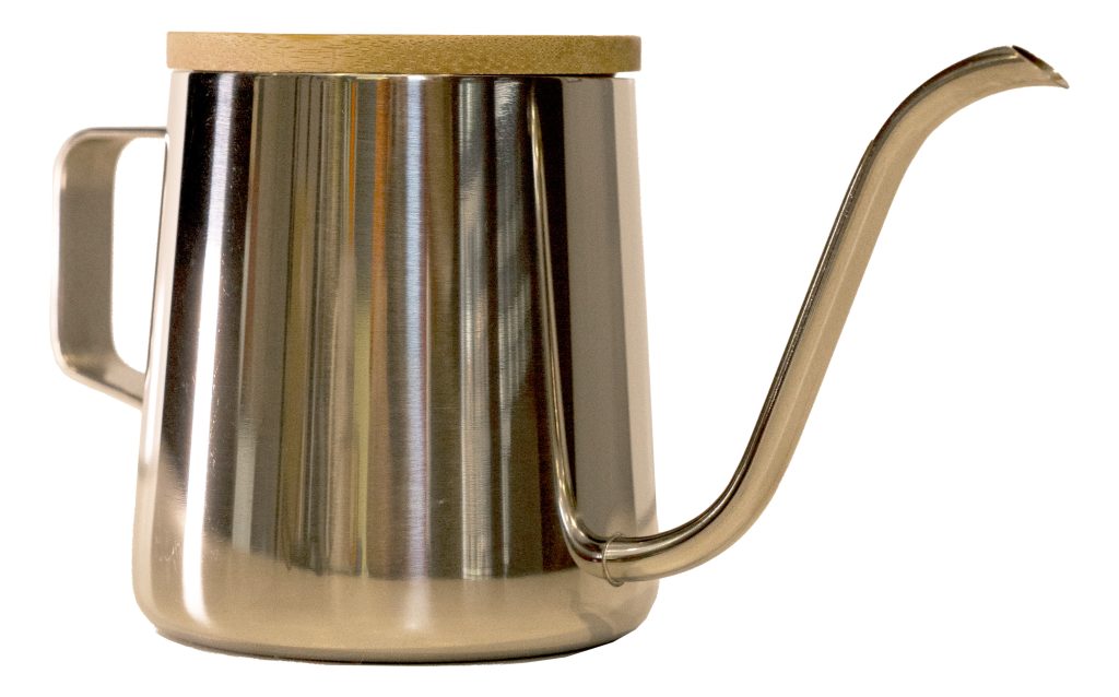 Descrição: feito em inox com tampa de madeira, ideal para o preparo do drip coffee